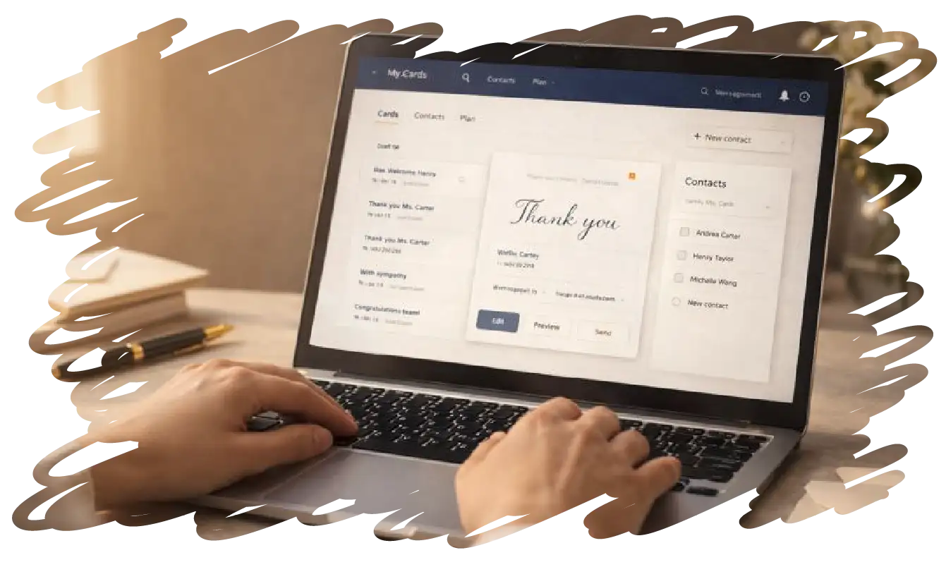 Every card you send helps build trust, strengthen relationships, and support the people who matter most. We make it easy to keep your business personal, thoughtful, and human, without the usual hassle of printing and mailing.